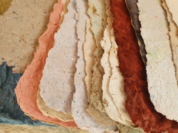 Irena Štyrandová rozumí materiálu, výrobě, technologii a šíři produkce. Experimentuje s hmotou, barevností, strukturou i tvarem ručního papíru.